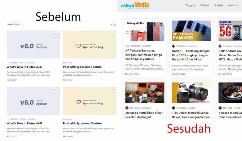 Sampai disini Cara Merubah Beranda Tampilan Homepage Fletro Pro Menjadi Grid Seperti Kartu telah selesai, setelah kamu klik simpan kamu bisa langsung melihat hasilnya. Simak juga tutorial lainya seputar template Fletro Pro.